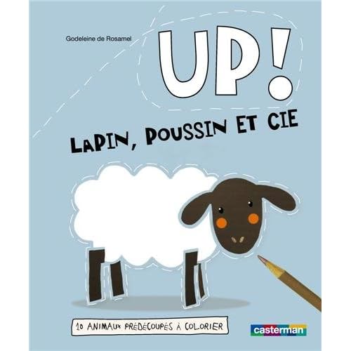 Dans chaque album de cette nouvelle collection, dix animaux à colorier, à découper... et bien plus encore. UP ! est «ne nouvelle collection d'albums rassemblant par thème des animaux prédécoupés à colorier. 10 personnages d'animaux sont proposés dans chaque titre, avec une approche originale : de nombreuses suggestions d'utilisation pour les figurines ainsi obtenues sont en effet proposées, telles que marque-page, marque place, cartes à envoyer, étiquettes cadeaux, mobiles amusants, marionnettes à bâton... La découpe des animaux peut ainsi se démultiplier en nombreuses activités. Bonus : les Jeunes lecteurs sont encouragés à utiliser les figurines évidées comme pochoirs pour tracer de nouvelles silhouettes. La collection débute avec trois titres publiés simultanément : Lapin poussin et Cie, Hippo, croco et Cie, Tortue, souris et Cie. Au générique de Lapin, poussin et Cie : la poule, le coq, le lapin le canard, le chat, le chien, le cochon, l'âne, le mouton et la vache.