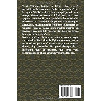 Voici l'édifiante histoire de Rémi, enfant trouvé, recueilli par la brave mère Barberin, puis acheté par le signor Vitalis, ancien chanteur qui possède une troupe d'animaux savants. Rémi part avec eux, apprend le métier. Un jour, après bien des vicissitudes inhérentes à la condition de pauvres saltimbanques ambulants, Vitalis meurt de froid dans les carrières de Gentilly. Rémi se trouve alors d'autres maîtres: un jardinier, avec une fille muette, Lise. Mais ces temps heureux ne durent guère...Nous ne vous dévoilerons pas toutes les aventures que va connaître Rémi, dont la légitime obsession est de retrouver ses parents. Comme vous pouvez vous en douter, il y parviendra. Un grand classique de la littérature pour la jeunesse, que nous vous recommandons, et que vous pouvez lire à tout âge.